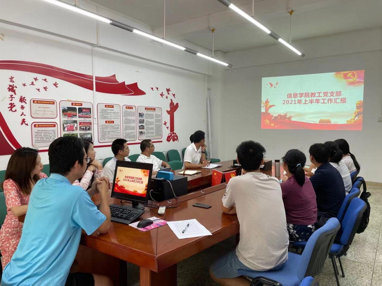 会议第一项,由梁奂晖代表支部委员会报告半年来党支部工作情况。梁奂晖从“主要工作成绩亮点”、“主要问题”、“认识和努力方向”三个方面向全体党员汇报了2021上半年教工党支部工作情况。