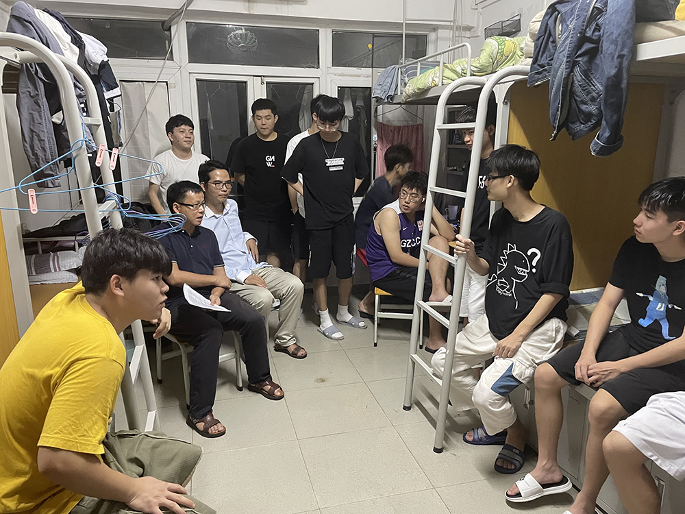 为了进一步加强实习安全教育,让每一个同学都清楚实习安全问题,2021年7月7日晚上,太阳成集团tyc副经理汤锋,软件教研室主任梁奂晖,指导学徒班顶岗实习工作的老师李建平、高寒,以及辅导员胡婷一行走访了2022届软件学徒班宿舍。