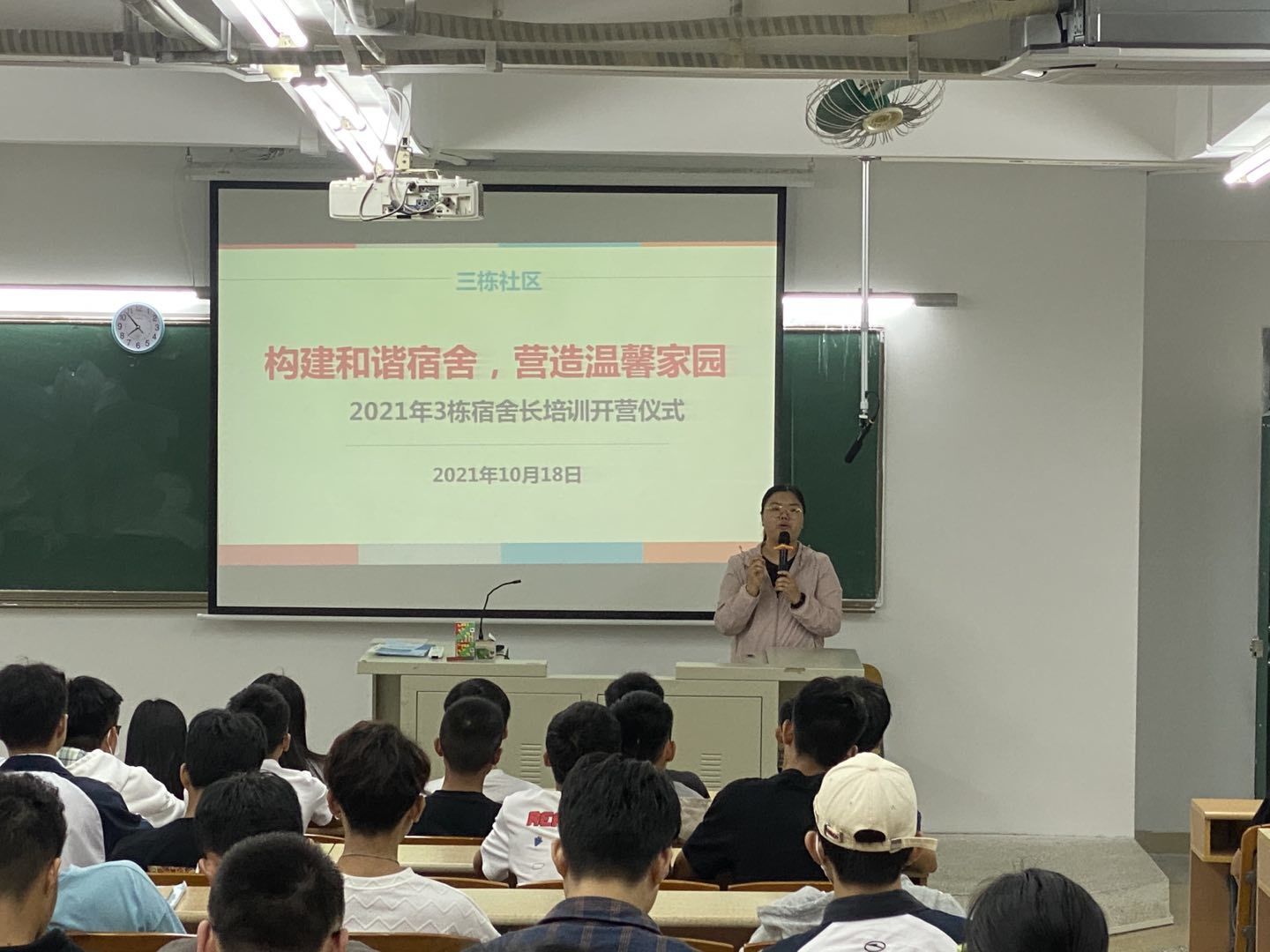 为了响应公司两站五导的工作,更好地发挥辅导员五导育人作用,加强员工宿舍管理,切实提高宿舍长队伍素质和工作能力,发挥宿舍长在建设和谐、平安校园中的作用,根据太阳成集团2021年宿舍长培训要求,结合楼栋的实际,3栋社区工作站将在10月系统开展宿舍长培训。10月18日召开了宿舍长培训的开营仪式,活动由站长梁均玲主持,楼栋老师、员工干部以及宿舍长代表参加。