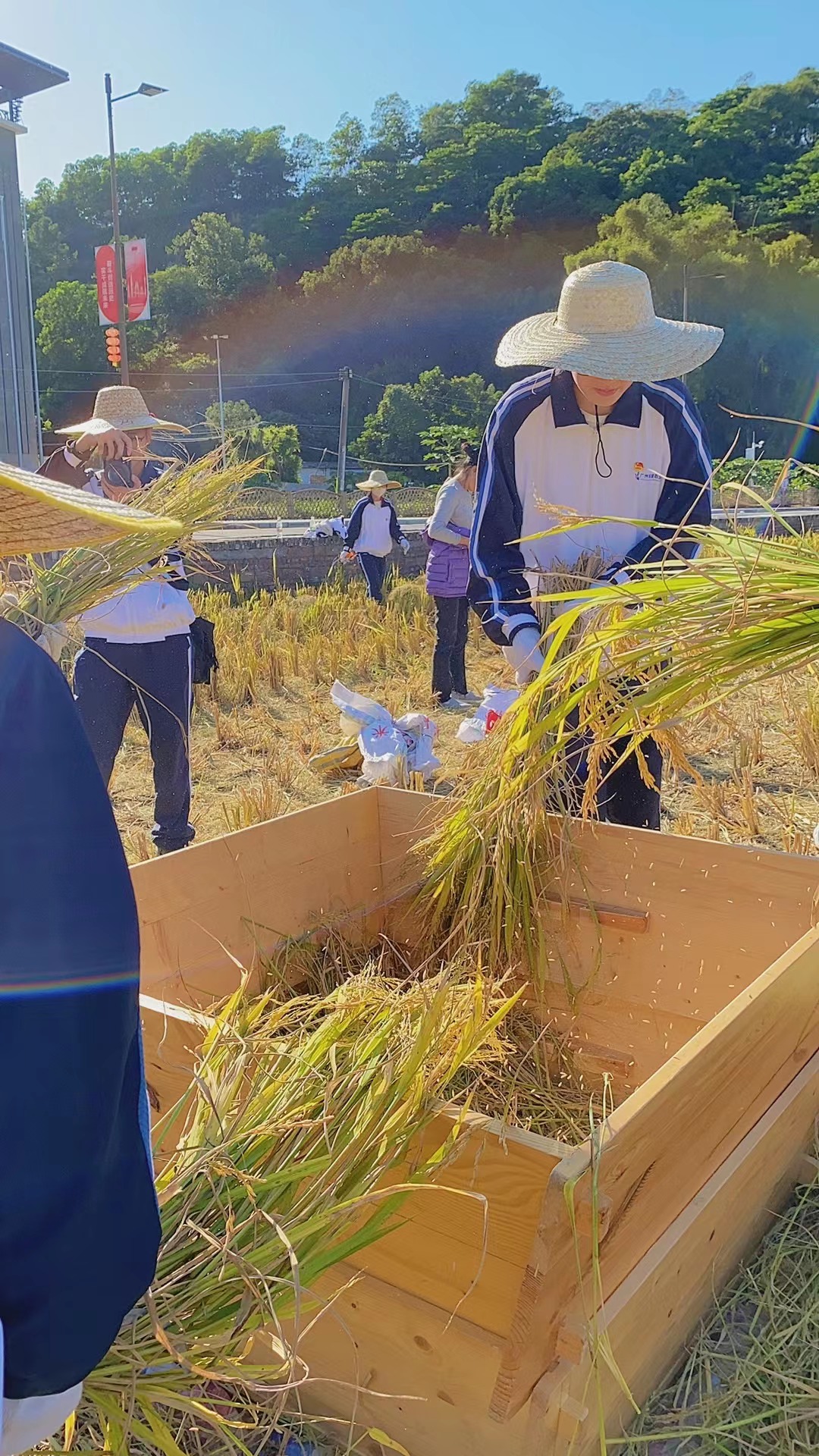 紧接着,大家在当地村民的带领下到稻田里帮助农民收割稻谷,在稻田里挥洒汗水,体会广大劳动人民精耕细作的艰辛以及丰收的喜悦。