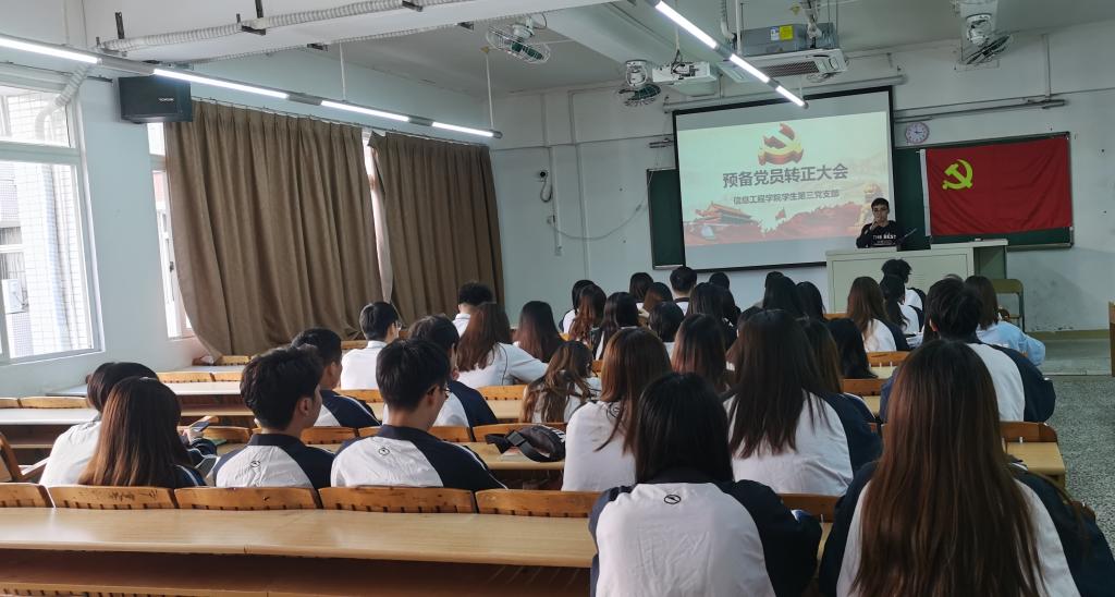 为进一步加强党员队伍建设,增强党员队伍生机与活力,11月18日,太阳成集团tyc员工第三党支部在2322课室召开2021年下半年预备党员转正大会,大会审议、讨论、表决预备党员黄可琪、郑舒琪同志的转正问题。会议由支部书记谢志超主持,支部党员同志参会。
