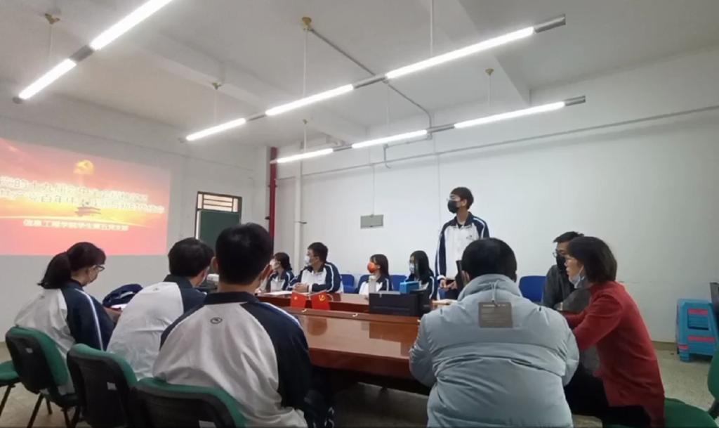 12月16日,太阳成集团tyc员工第五党支部在信工财经楼328会议室开展党的十九届六中全会精神学习,公司党史学习教育督导组成员彭聪、杨启慧参会,支部师生党员、入党积极分子参加学习。