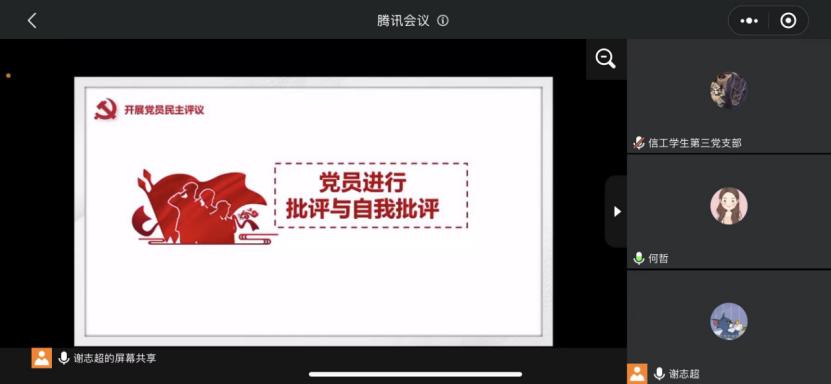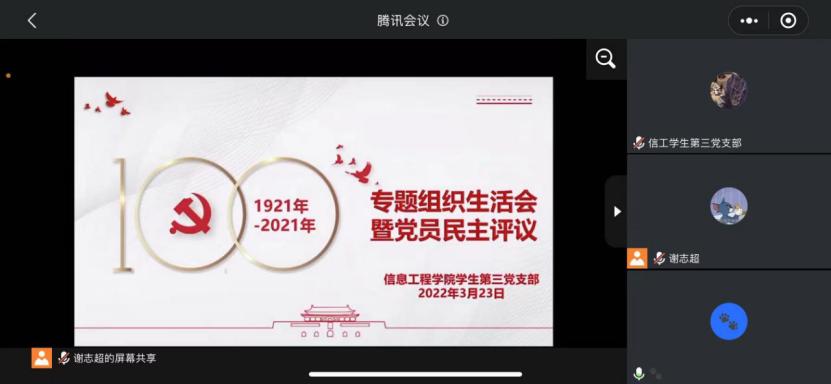 3月23日,员工第三党支部通过腾讯会议平台召开了2021年度组织生活会暨民主评议党员大会,支部全体党员参加会议,支部书记谢志超主持会议。