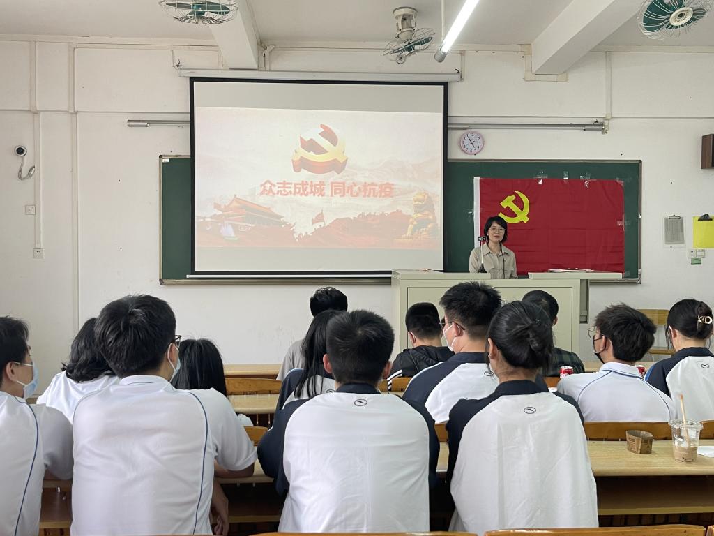 支部书记苏碧玲对近期支部师生党员参与疫情防控志愿活动情况做了小结。在疫情防控期间,支部师生党员录制视频《众志成城同心抗议》为抗疫加油鼓劲,积极加入核酸检测志愿服务队,坚守党员责任区,让党徽在抗疫一线熠熠生辉,充分体现了党员的先锋模范作用。