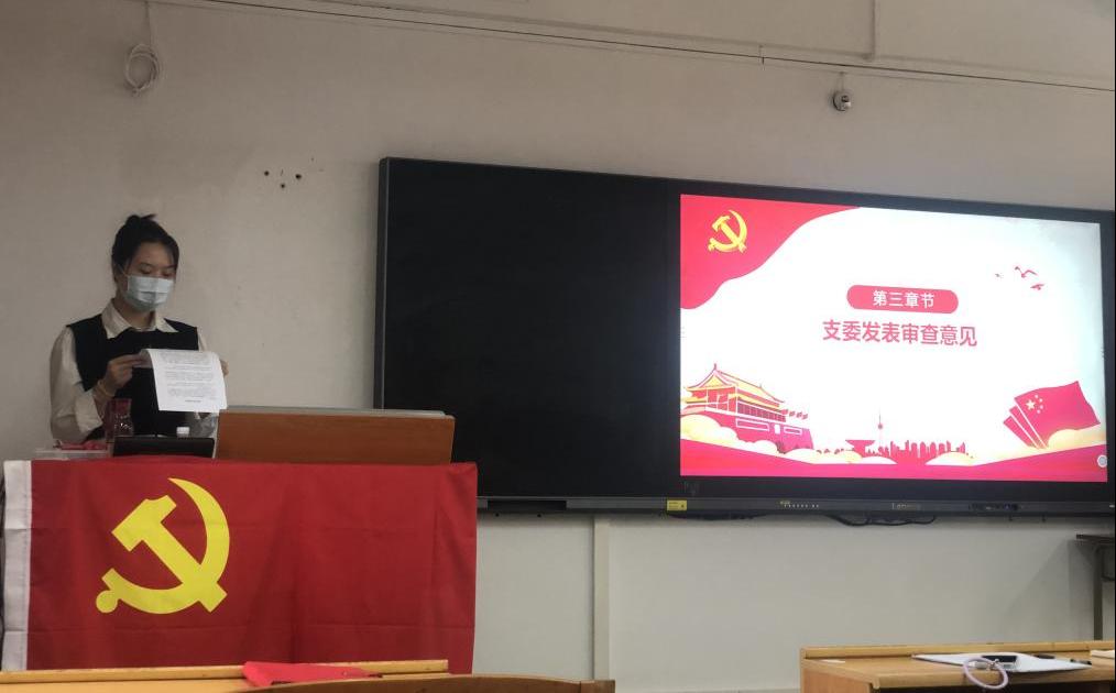 会议伊始,各预备党员依次简明扼要地汇报了预备期间个人在思想、学习、工作、生活等方面的表现,肯定了成绩,找出了缺点和不足,表明自己的态度和决心。接着,支部党员同志进行党的知识提问。支部委员根据各位同学的实际情况发表审查意见,对每一位同志的培养情况做客观反馈。