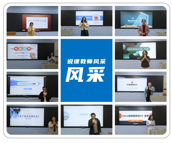 经教研室推荐,十位“说课”教师以三人或四人为一组依次进行8-15分钟的现场展示,主要围绕课程定位、目标、设计、实施、考核和成效等六大模块进行了生动的说课展示。