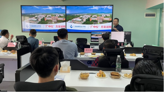 苏崇坚介绍了公司的整体情况,就“厂中校”方案政策依据、模式等内容进行详细介绍,表示公司的人才需求与公司专业设置契合度很高,未来可以通过部分员工提前到岗、公司教师到企业教学等方面继续加深合作。