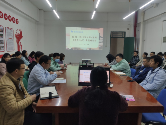 为深化课程建设和教学改革,提升公司产品成效。3月31日下午,公司在信工财经楼328召开《信息技术》课程建设研讨会。教务处考务干事梁丽明和全体任课教师出席会议,会议由副经理汤锋主持。