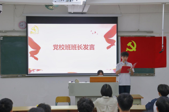 党校班班长孙悦、杨文星上台发言,他们表示很荣幸能成为一名入党积极分子,在接下来的党校班培训中,他们将认真履行党校班班长职责,积极配合老师完成教学目标和任务,用心服务同学,与同学们共同进步,带领全体学员高质量完成学习任务。