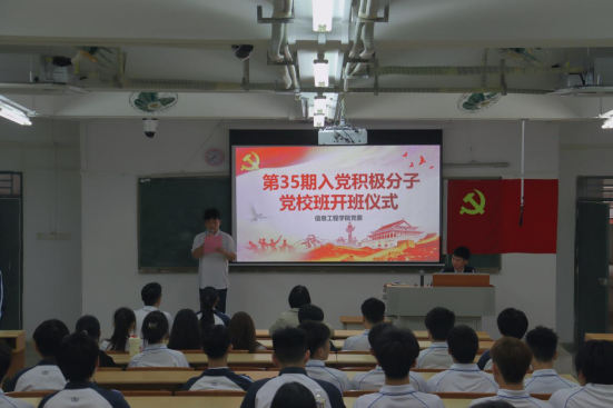 5月10日,公司在信工财经楼219、210教室举行第35期入党积极分子培训班开班仪式,公司党建办公室指导老师苏碧玲,员工党员代表蔡梓恒、巫静秀以及第35期党校培训班学员参加了此次开班仪式。