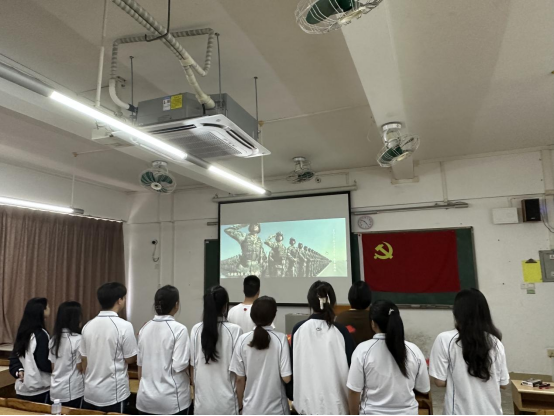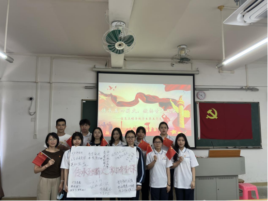 紧接着,党支部书记苏碧玲带领大家重温习近平总书记对广大青年的寄语,党支部成员各抒己见,为自己写下青春寄语,合唱青春励志歌曲——《有我》,同学们用励志的青春寄语、激昂澎湃的歌声充分展现了当代青年朝气蓬勃的精神风貌。