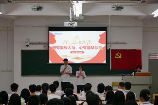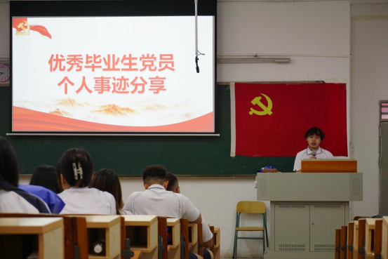 优秀毕业生党员代表赖富军分享发言,他回顾了自己大学三年的成长和收获,分享了自己的入党心路历程,并对无私奉献的老师们表示深深的感谢,表示将努力践行城建公司“修德、砺能、崇学、尚行”校训,带着城建赋予大家最宝贵的精神烙印,纵千回百转,初心不改,越万水千山,继往开来。
