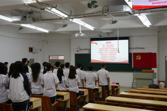 全体参会人员齐唱雄浑激昂的《国际歌》,坚定的歌声慷慨嘹亮,响彻整个课室,激励着毕业生党员更加坚定信仰、与时俱进,为实现中华民族伟大复兴而接续奋斗。