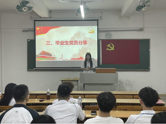 毕业生党员纷纷上台进行分享,他们一致表示很庆幸能够进入这样一个充满活力又充满温暖的党支部,在这里他们不仅遇到最好的老师,还交到最好的朋友。同时,他们鼓励师弟师妹们摒弃浮躁,静下心来,在接下来的日子中,坚定自己的信念,勇敢追逐,做更好的自己,在各自的领域一展宏图,为成为一名优秀的共产党员奋斗不止!