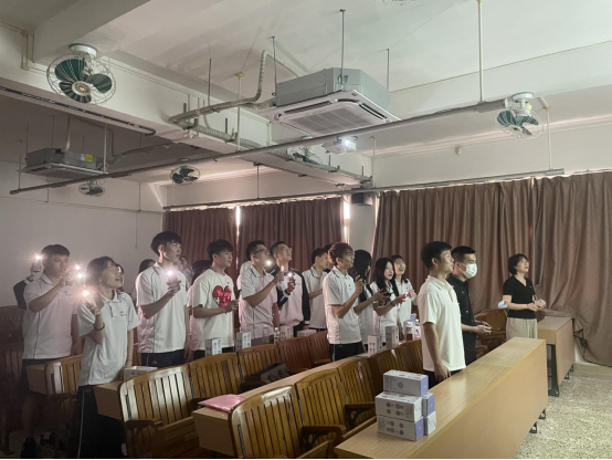 欢送毕业生党员环节,苏碧玲为毕业生党员送上纪念品,并拍照留念,以表达对毕业生党员所作贡献的感谢,全体师生党员歌唱《凤凰花开的路口》为毕业生党员进行欢送。