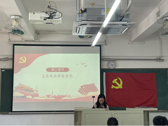 支部委员林赛赛、梁筱分别宣读预备党员、重点发展对象的审查意见,公平公正地对汇报的同志进行审查,在充分肯定其闪光点的同时也提出了许多宝贵的改进意见。