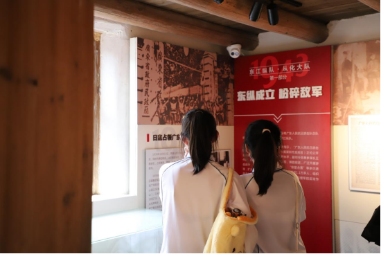 经过4公里的徒步,学员们到达了黄沙坑革命旧址,稍作休整后大家纷纷走进黄沙坑革命旧址纪念馆参观学习。纪念馆内既有实物陈列,又有图片文字说明,一件件铁证诉说着当年侵华日军的罪行,一个个故事铭记着黄沙坑的光荣历史。通过认真观看展厅内的纪录影片和历史文物,学员们了解了发生在黄沙坑的革命历史,由此追溯红色记忆,深刻感受并学习革命先辈崇高的爱国主义精神。大家纷纷感慨,我们生活在和平的今天,虽然不用再经历硝烟和炮火,但仍要时刻谨记着为了美好今天而付出生命的人民英雄,更不能忘记战争时期在莲麻村发生的点点滴滴。