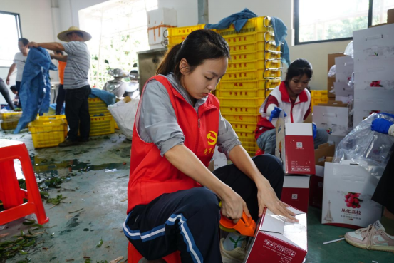 六月下旬正是从化荔枝收获时节,上午,实践团成员走进荔枝打包车间,亲身体验了荔枝从树上采摘下来之后挑拣和打包的全过程,学习了荔枝的品种、特点、保鲜方法等知识,进一步加深了对荔枝保鲜的了解,更加深刻体会到了荔枝从树上到消费者手中这一过程的艰辛。