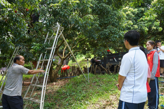 下午,实践团成员走进荔枝园,与采摘荔枝的农民进行了亲切交流,询问了他们的工作情况、生活状况等问题,了解了他们对从化荔枝产业的看法和建议。实践团成员还向他们介绍了电子商务的优势和乡村振兴发展机遇,电子商务与荔枝产业有机融合,不仅可以创新荔枝销售模式,还可以提高荔农收入水平,改善生活条件。在交流过程中,实践团成员看着荔农汗流浃背的背景,对“荔荔皆辛苦”有了更深的认识。