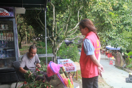 与售卖荔枝的村民交流