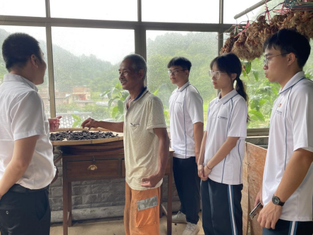 杨叔热情地接待了实践团一行,向实践团成员详细介绍了在此地种植的茶种——韶丰茶,并在茶室里给实践团成员们示范如何泡茶,带领实践团成员深入了解韶丰古树茶的历史渊源和独特韵味。