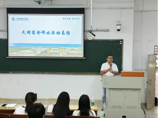 10月19日,“文明宿舍”评比表彰在信工财经楼118教室举行。公司副经理刘杰,21、22级辅导员老师代表出席了颁奖仪式。21、22级获奖宿舍,23级新生班级代表参会。