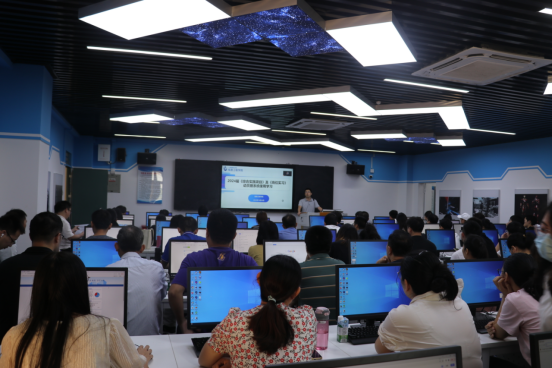 会上,彭远平针对《综合实践项目》及《岗位实习》系统相关模块功能作了详细的介绍和操作使用培训。