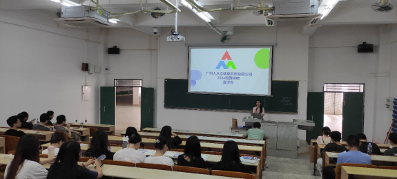 4月2日下午,广州人从众信息科技有限公司刘洪彬总经理带领公司团队成员在信工财经楼716开展校园招聘宣讲活动,宣讲会由电子商务教研室主任谢金荣主持,广州人从众信息科技有限公司商公司负责人王瑞香主讲。公司电子商务和跨境电子商务专业员工共70多名参加了宣讲会。
