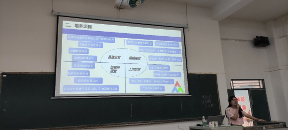 宣讲会结束后,王瑞香针对主播岗位给同学们进行了简要的培训,从主播的素养、主播的话术等方面进行主播的基本技能培训,介绍了如何从小白到初级主播,从初级主播到高级主播的职业发展。