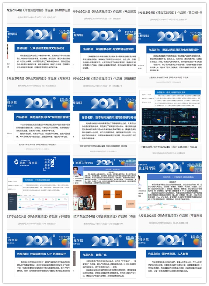 本次展览以“亮出成绩,展出水平”为主题,展示了2024届毕业生们《综合实践项目》的各类优秀作品,是对2024届毕业生三年学习的一次重要检阅和总结,活动不仅彰显了员工们扎实的专业技能和无限的创造潜力,也为他们提供了一个展示自我、交流思想的平台。作品展链接:/list.jsp?a27910t=2&a27910p=2&a27910c=10&urltype=tree.TreeTempUrl&wbtreeid=1060