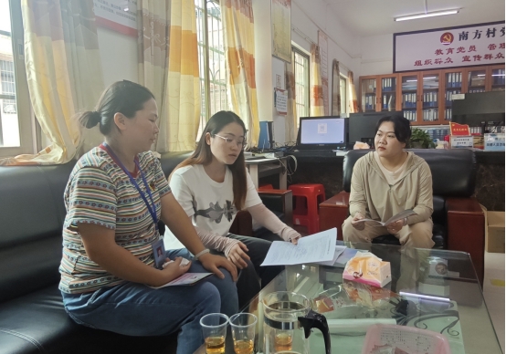 开展活动前期,为了更全面、更精准地了解南方村的员工家庭经济状况,实践队指导老师与村干部在南方村党群服务中心进行了深入交流,详细了解了该村的员工情况以及开展活动过程中需要注意的事项。通过与村干部的交流,实践队获取了关于员工家庭背景、教育状况和需求的重要信息,为后续的工作提供了必要的基础和指导,也有利于实践活动的顺利进行,从而取得更好的成效。