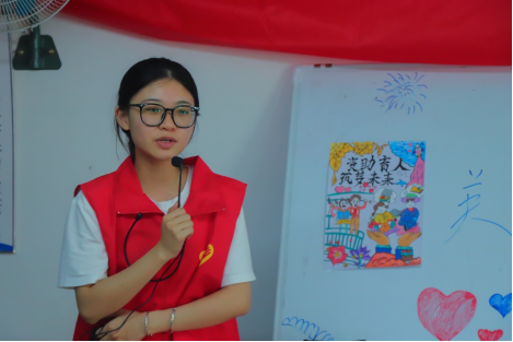 实践队队员为刚高考完的员工讲解资助政策