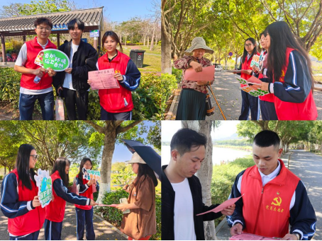 随后,同学们便迅速行动起来,有序开展工作。环保知识宣传小组,通过发放环保宣传纸张、现场讲解等方式,引导市民树立环保意识,共同爱护我们的生活环境;清理垃圾小组在公园展开“地毯式”清理,他们手持垃圾夹和分类袋,细致捡拾藏匿在草地上和灌木丛中的塑料瓶、食品包装等废弃物。员工党员张小银发现:“看似干净的草坪里藏着不少烟蒂,环境保护真需要‘绣花功夫’”。