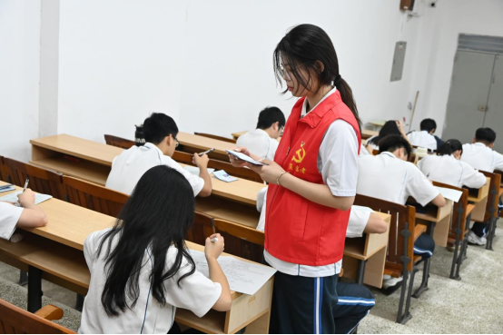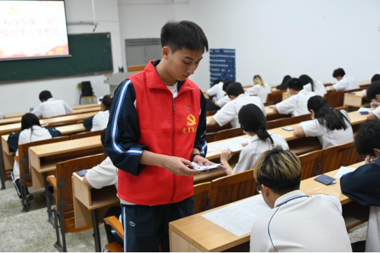 在考试期间,入党积极分子们表现出了高度的专注与从容,他们严谨地完成每一道题目,同时严格遵守考场的各项规定,体现了优良的个人品质和精神风貌。监考人员恪守岗位,认真负责,有效地维护了考场的公正性和严肃性,保障了考试流程顺畅无阻。