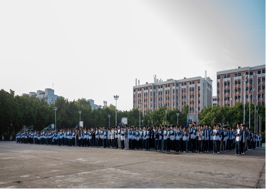 升旗仪式在清晨的阳光中拉开序幕。伴随着雄壮激昂的国歌声,鲜艳的五星红旗在三区篮球场上徐徐升起,迎风飘扬。全体师生神情肃穆,目光坚毅地注视着国旗,心中涌动着对祖国的无限忠诚与深切敬意。