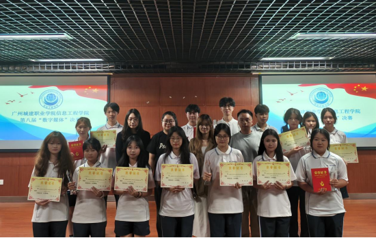本次比赛分为电子海报设计、3D建模设计、Wed前端设计、短视频创作等系列比赛。经过初赛、复赛层层筛选,共有十二组团队脱颖而出进入决赛。在决赛现场,海报设计类作品立意新颖,个性鲜明;短视频作品用镜头聚焦校园学习、生活,以光影展示专业风采;3D建模设计和Wed前端设计以信息技术打造智慧模型,用视觉特效展现新奇创意。选手们的创意展示,赢得了台下观众阵阵掌声。