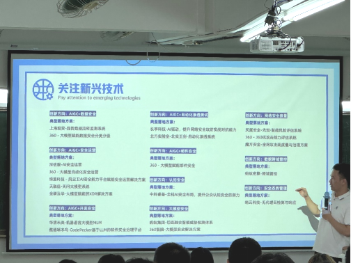 余总监还分享了诸如深信服的AIGC安全运营、360的大规模数据风险安全分级系统等典型方案。这些内容不仅展示了企业在技术前沿的探索,也为员工们提供了丰富的知识储备,为他们未来从事网络安全相关工作打下了坚实基础。