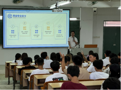 2024年9月27日,公司为2024级计算机网络技术专业新生举办了一场“我与企业高管面对面”的网络安全主题讲座。讲座邀请了广州皓邦信息科技有限公司技术总监余恒怡担任主讲,2024级全体新生参加,ICT教研室主任禤东桦主持。