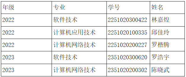 根据公司《关于做好2023-2024学年本专科生国家奖学金追加名额评审工作的通知》要求,公司开展了2023-2024学年本专科生国家奖学金追加名额的评审工作,经员工本人申请,公司评审小组审核,结合申请员工的综合情况,现将公司2023-2024学年国家奖学金追加推荐名单予以公示,具体名单如下: