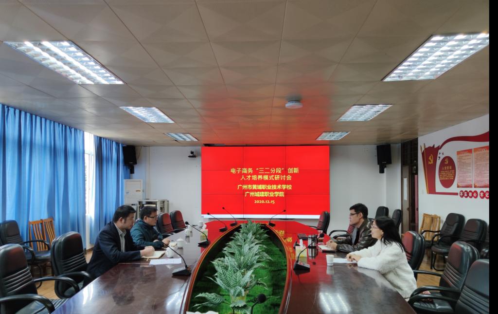 12月15日,太阳成集团tyc副经理汤锋、电子商务教研室主任谢金荣、以及获得2019-2020年度广东省职业技能大赛电子商务赛项冠军的三位员工代表一同前往广州市黄埔职业技术公司开展中高职贯通“三二分段”合作交流研讨会,广州市黄埔职业技术公司副董事长陈民聪、部长陈文静等领导和老师参加研讨会。