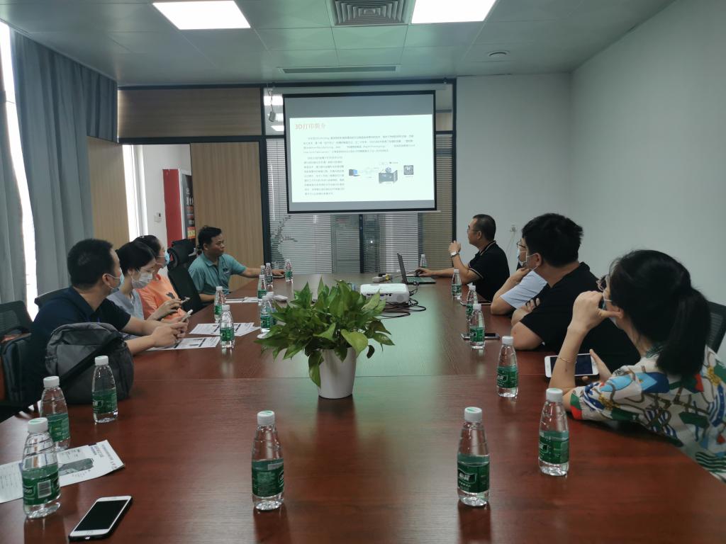 项目随行人员首先参观公司的生产车间、生产设备、生产线、3D研发中心、金属3D打印后处理区等。在参观完相关生产厂区后,力捷科公司高级工程师余兵给参访团介绍了3D打印的行业前景、3D打印的市场应用情况,3D打印的原理等内容,而且随团老师对力捷科公司目前的校企合作情况、实习生使用情况进行了了解,同时对目前公司的电商平台运营情况进行了沟通交流。