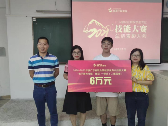 在教员工涯中,邱老师注重“以赛促学,以学促赛,以赛促训”,积极调动员工学习的主动性,培养员工的专业意识、团结协作及创新精神。邱老师在担任省职业技能大赛电子商务赛项指导老师期间,每天下课后就和参赛员工泡在集训室,反复训练,提高技能,模拟比赛环境,磨练参赛员工的临场应变能力。最终带领员工竞赛团队连续4年荣获广东省职业技能大赛电子商务赛项一等奖,其中2020-2021连续两年蝉联省赛冠军,入围国赛2次,2022年作为广东省代表队参加国赛荣获国赛三等奖。