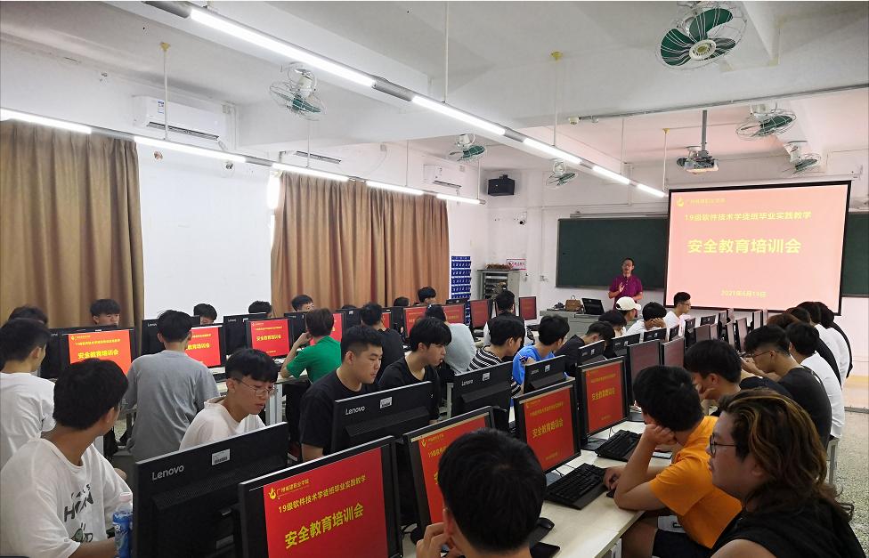 为顺利推进2019级软件学徒班员工顶岗实习工作,6月19日,2019级软件学徒班指导老师李建平、郑少珍、高寒及辅导员胡婷在信工财经楼409课室召开顶岗实习安全教育培训会。