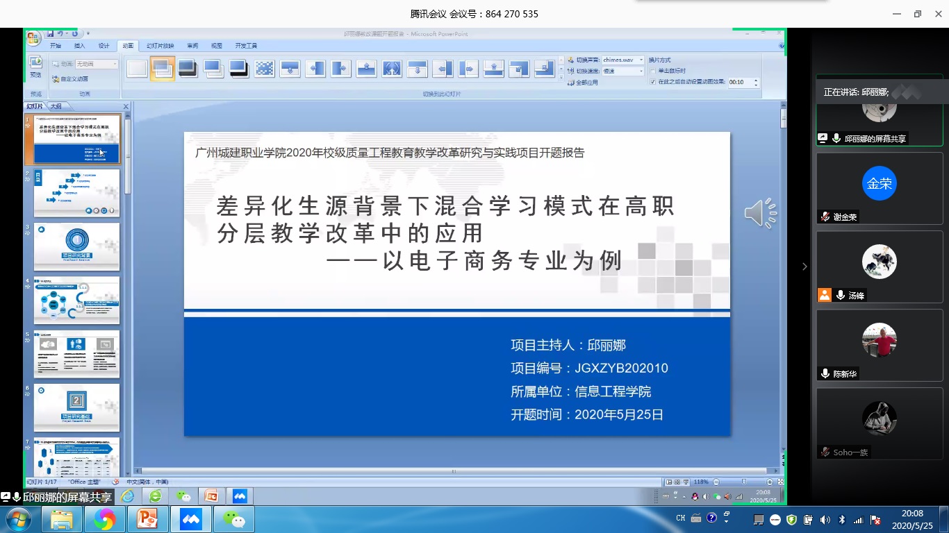 各项目负责人分别就所负责的项目从研究背景、研究基础、实践内容、实施计划、预期成果等方面做了详细汇报。与会专家评委对三位负责人的开题汇报及前期申报工作充分肯定,指出项目选题符合当前国家的方针政策和疫情影响下的教学模式需要,选题各具特色,贯穿微观、中观和宏观三个方面的研究。并就项目意义、项目的研究内容、项目的特色创新、项目的研究成果及项目经费分配等方面存在的不足提出卓有见地的建议。