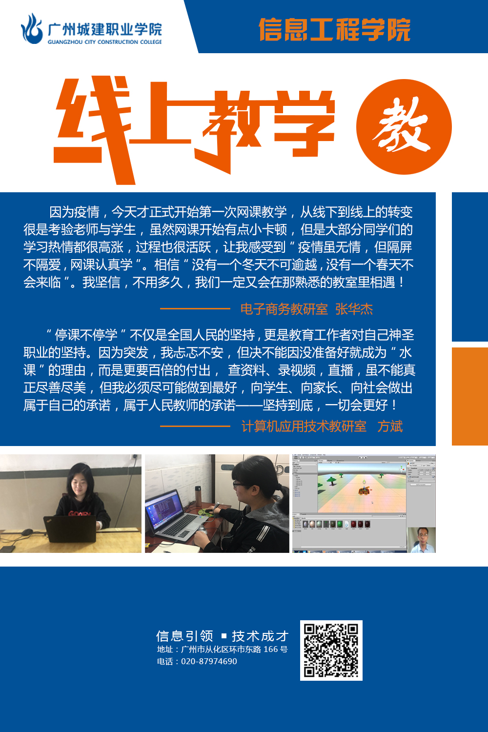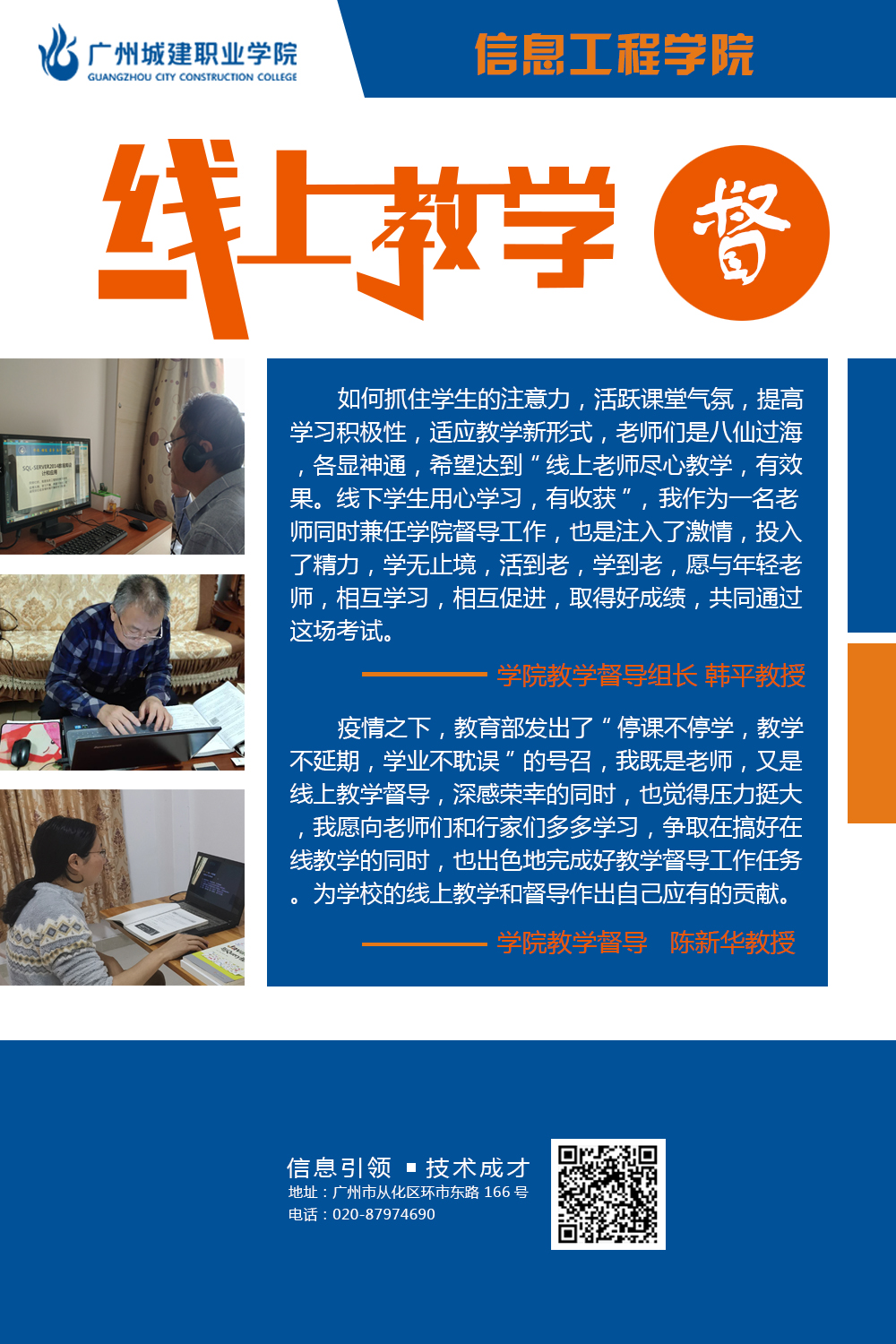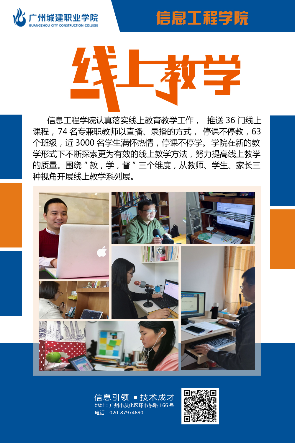 公司在新的教学形式下不断探索更为有效的线上教学方法,努力提高线上教学的质量,确保员工管理有条不紊,井然有序。不断激发工作新思维,按照公司线上教学工作要求,落实落地落细各项工作,充分挖掘教师信息技术应用过程中优秀典型案例,不断开拓创新管理水平,工作取得新成效。本次图片展,公司选取“教、学、督”三个维度,从“教师、员工、家长”三个视角,挖掘线上教学工作闪光点。
