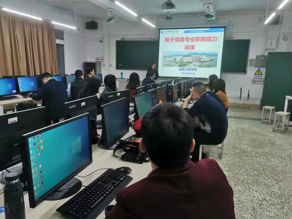 为提升教师职教能力,加强课程建设,深化“三教”改革,根据公司寒假教学设计工作要求,电子商务教研室于3月5日,在信息财经楼409开展说课活动,活动由教研室副主任邱丽娜主持,教研室全体教师参加,汤锋副经理参与旁听。