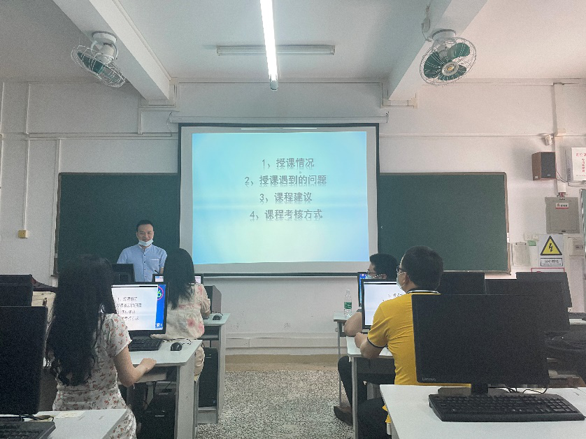 会议中,课程组教师蔡小宇、刘宏烽、李泳洁及林梦茹分别针对各自所讲授班级出现的问题以及员工的整体表现进行介绍,并从课堂授课情况、课程考核方式以及课程优化建议三个方面进行了深入的研讨。