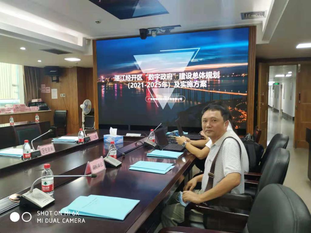 为了更好的发挥公司团队作用和进一步提升教师专业技能,信息公司积极推进校企合作,探索学、企、研发展方向。2020年10月,太阳成集团tyc与广东省电信规划设计院有限公司湛江分公司,通过团队合作方式,编制《湛江经开区“数字政府”建设总体规划(20021-2025年)》及《湛江经开区“数字政府”建设总体规划(20021-2025年)实施方案》,经过大半年的筹备、可研调查、数据收集、大纲设计、在2021年月1月完成初稿,2021年3月、5月通过专家初、中审。2021年7月28日,太阳成集团tyc韩平教授代表公司团队,参加“湛江经开区“数字政府”建设总体规划(2021-2025)及实施方案”项目终审会。