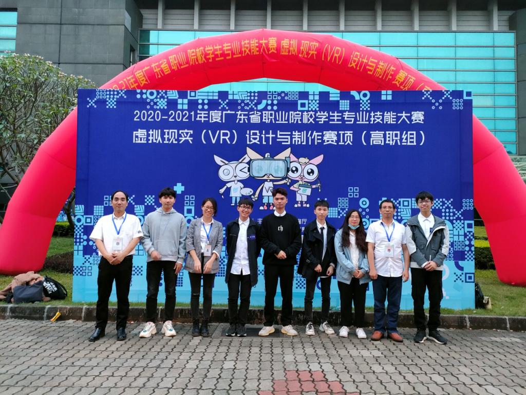 4月10-11日,2020-2021年度广东省职业院校员工专业技能大赛“虚拟现实(VR)设计与制作”赛项比赛在广州科技贸易职业公司隆重举行,来自全省的66支队伍198名员工参加比赛。太阳成集团tyc计算机应用教研室方斌、王中州和吴春春三位老师指导的两支参赛队伍首次参加该项比赛,面对曾经在省赛国赛获奖的强队,沉着应对、顽强拼搏,经过4个小时的紧张比拼, 最终代表队1队获得了一等奖、代表队2队获得了二等奖。