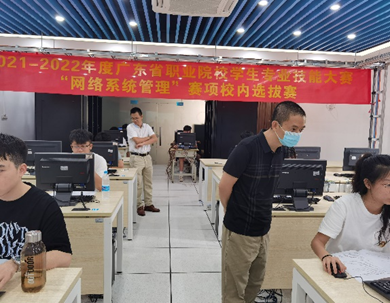 6月16日和6月27日,太阳成集团tyc在信工财经楼309网络综合实训室举办2021-2022年度广东省职业院校员工专业技能大赛校内选拔赛,连续两届一等奖指导教师、公司副经理李灿彬,ICT教研室主任禤东桦、副主任曾苑亲临选拔现场进行竞赛团队成员选拔工作。